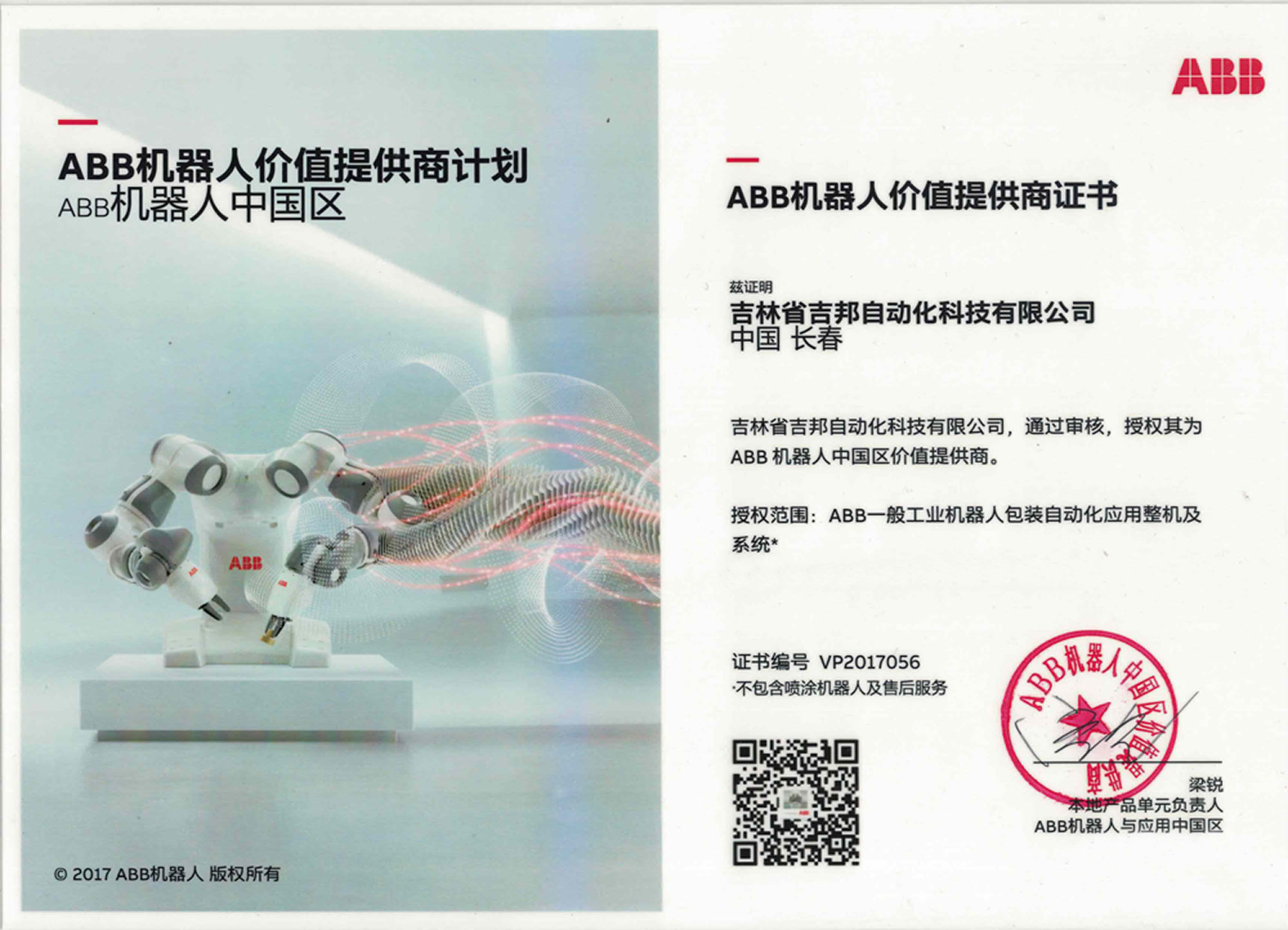 UR機器人經(jīng)銷商證書